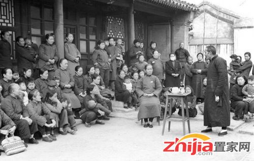 1953年3月18日,北京西单区贯彻婚姻法委员会召开街道宣传婚姻法群众大会。这是和睦家庭中的许德贵老大爷对大家讲他过去打骂子女的情形。