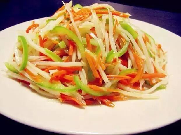 1、锅内放油烧热,将三丝入锅煸炒后,放黄酒、糖、再煸炒。