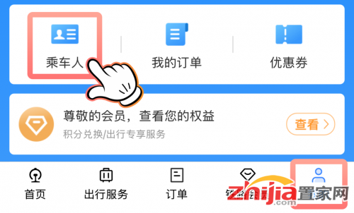 ① 首先,打开铁路12306 App,点击【我的】-【乘车人】。