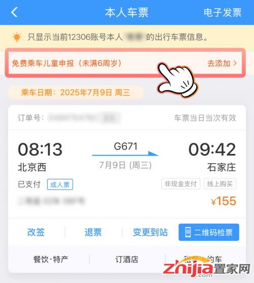 改签:免费儿童申报添加完成后,如所关联的成人票进行改签后,免费乘车儿童将随所关联的乘车人一并改签。